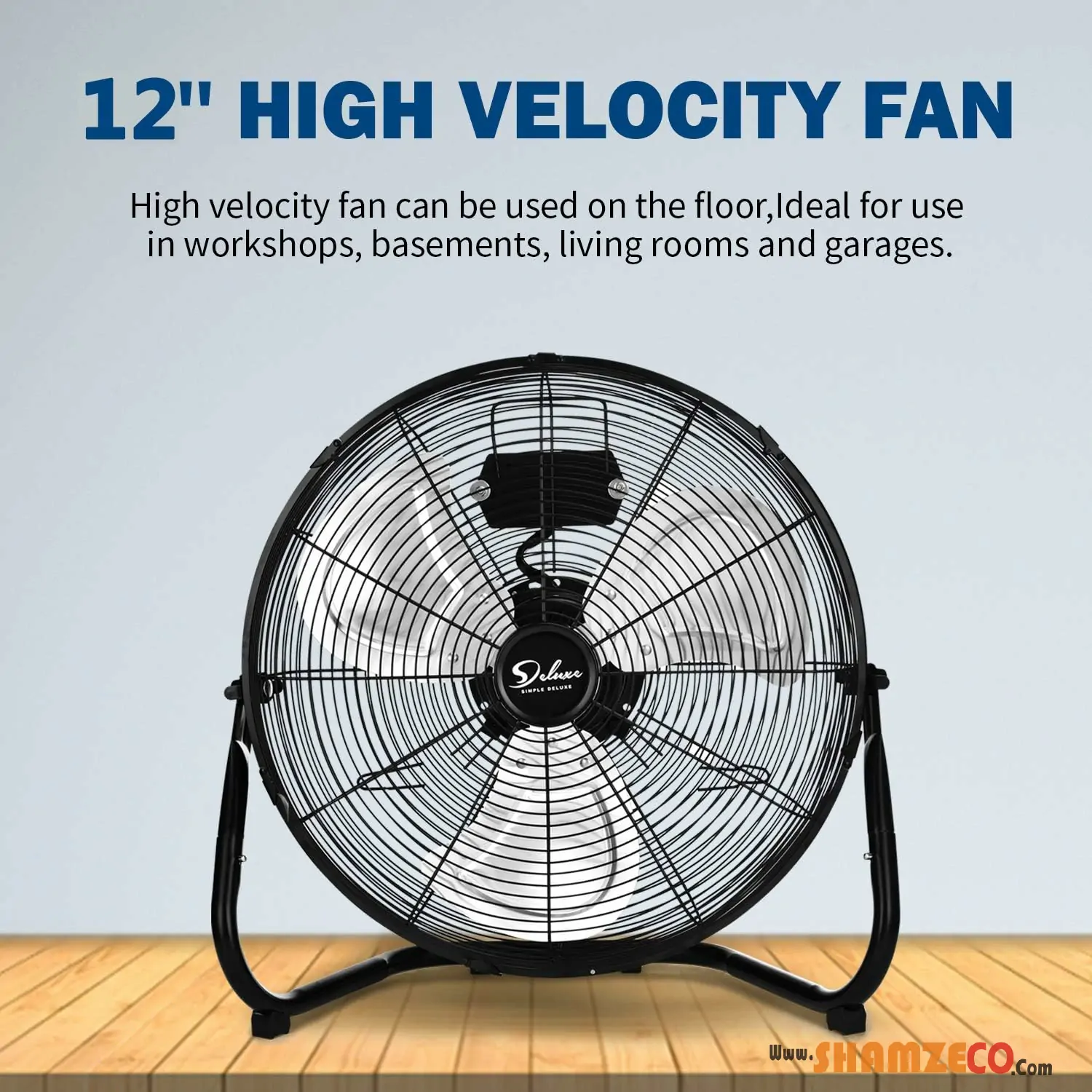 12″ High Velocity 3-Speed Industrial Metal Floor Fans, Heavy Duty Black – 2 Pack