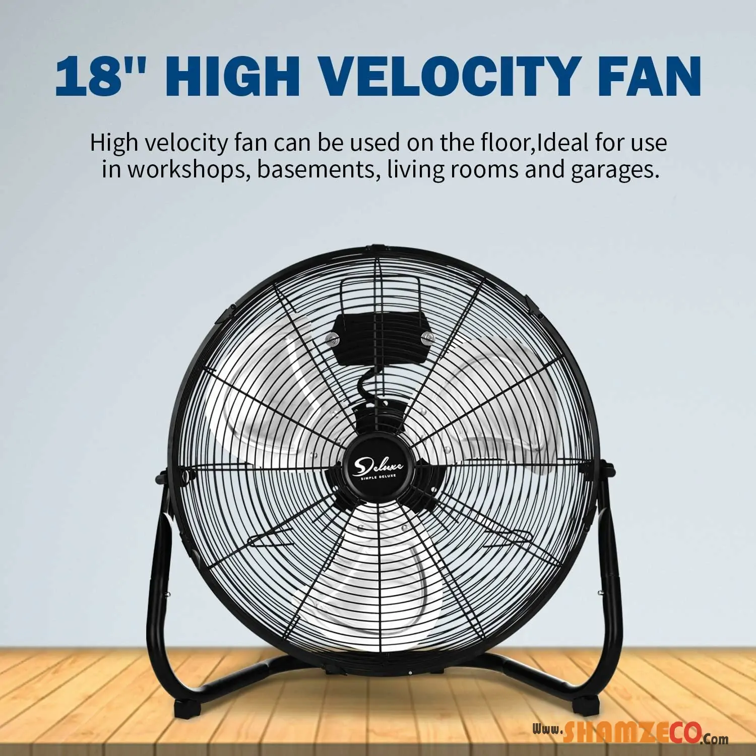 18″ High Velocity 3-Speed Industrial Metal Floor Fan, Heavy Duty – Black