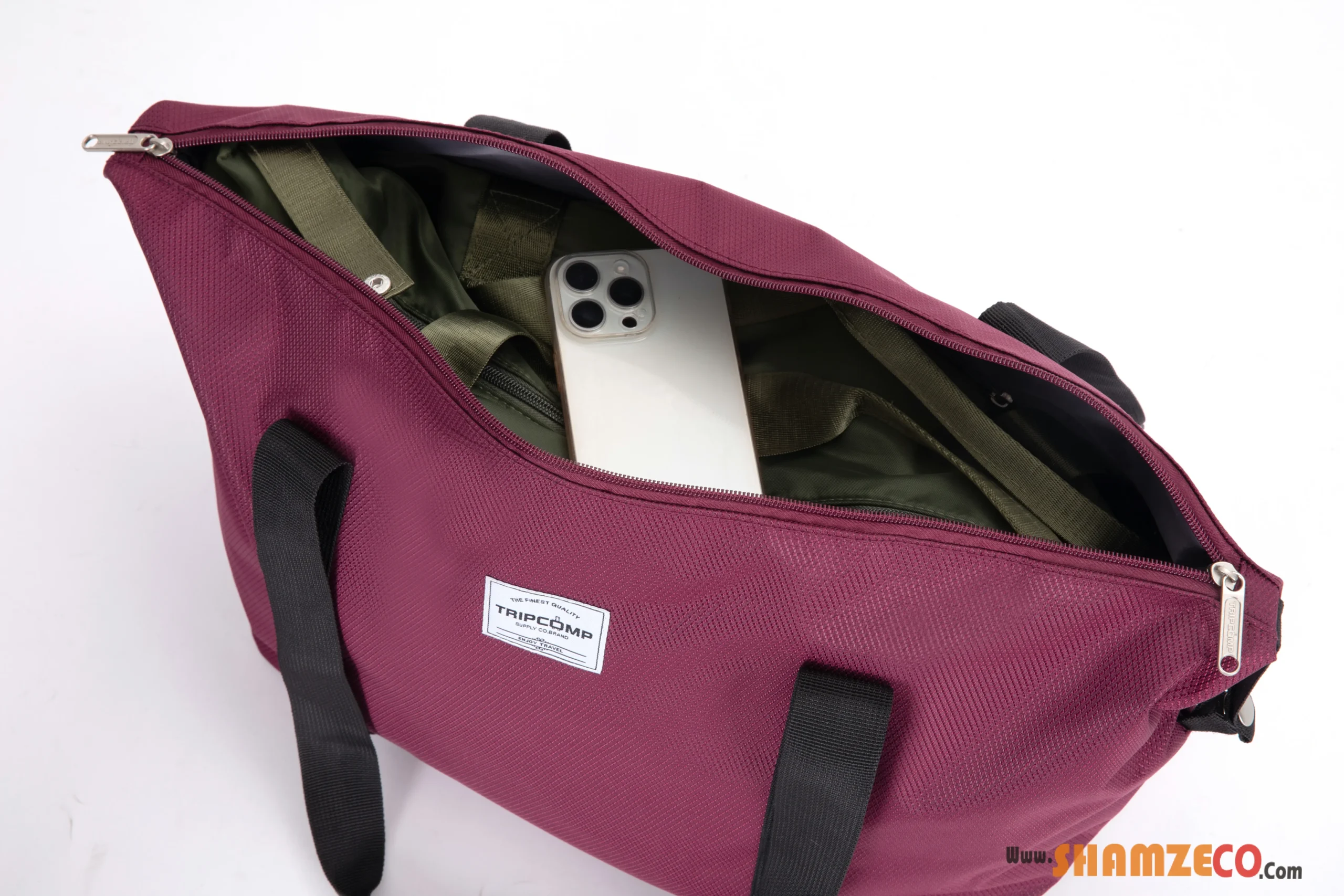 👜 Smart Storage Compartments – The fully lined interior includes zippered divider panels, mesh pockets, and a dry & wet separation bag to keep your belongings neatly organized.