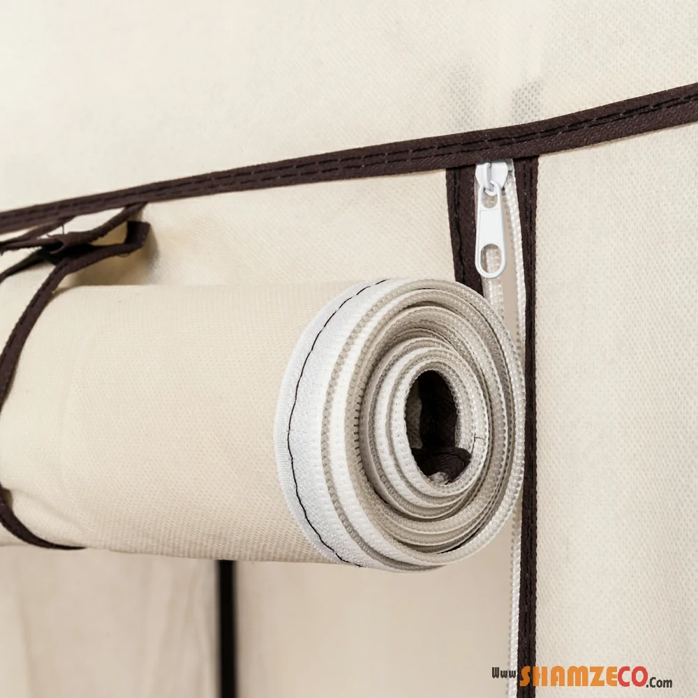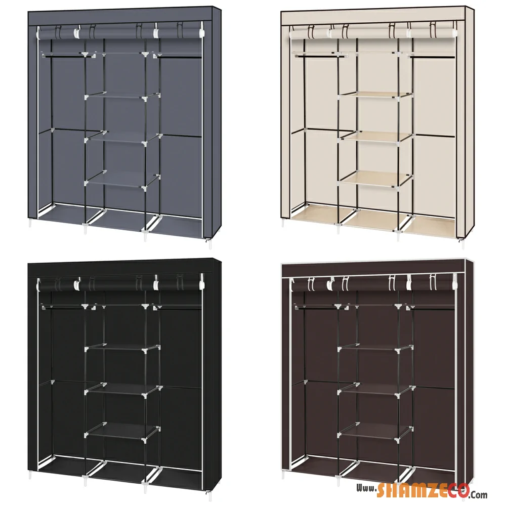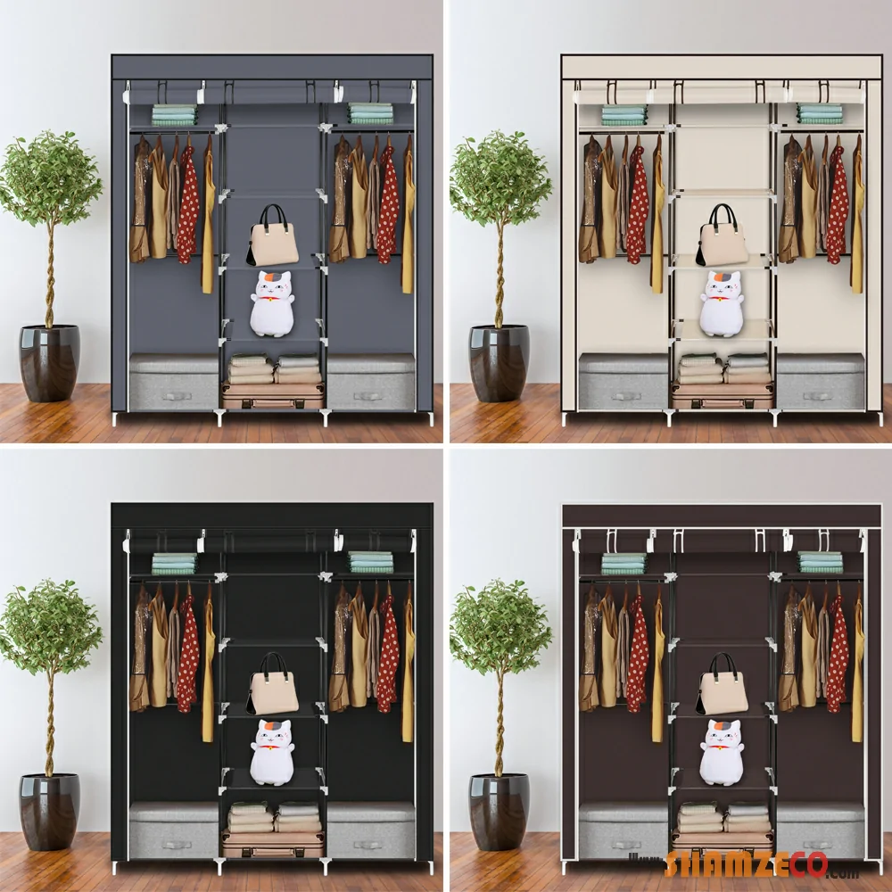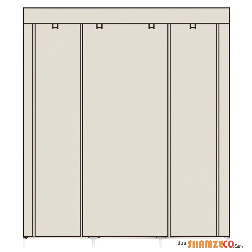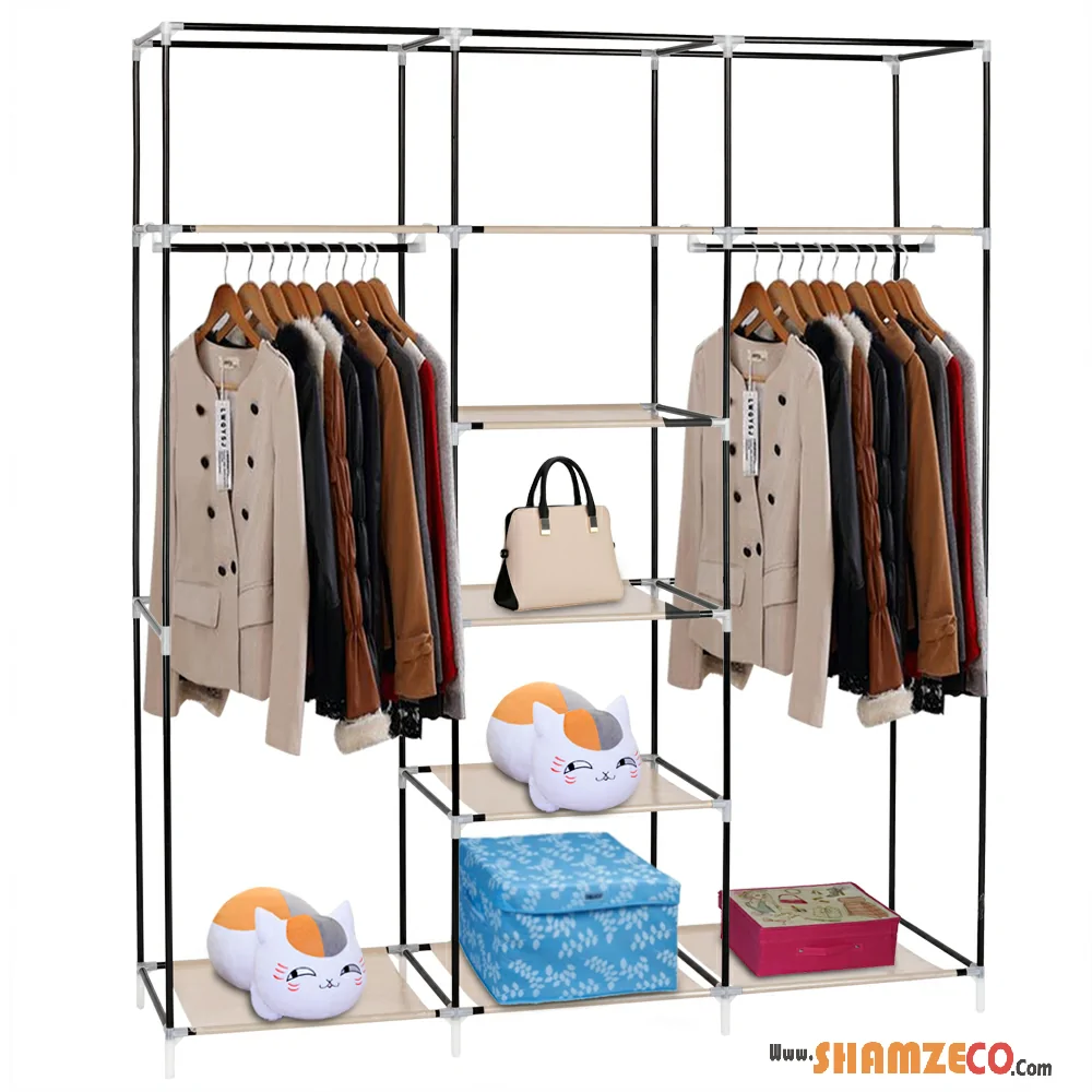 69 Portable Clothes Closet Non-Woven Fabric Wardrobe Double Rod Storage Organizer Beige