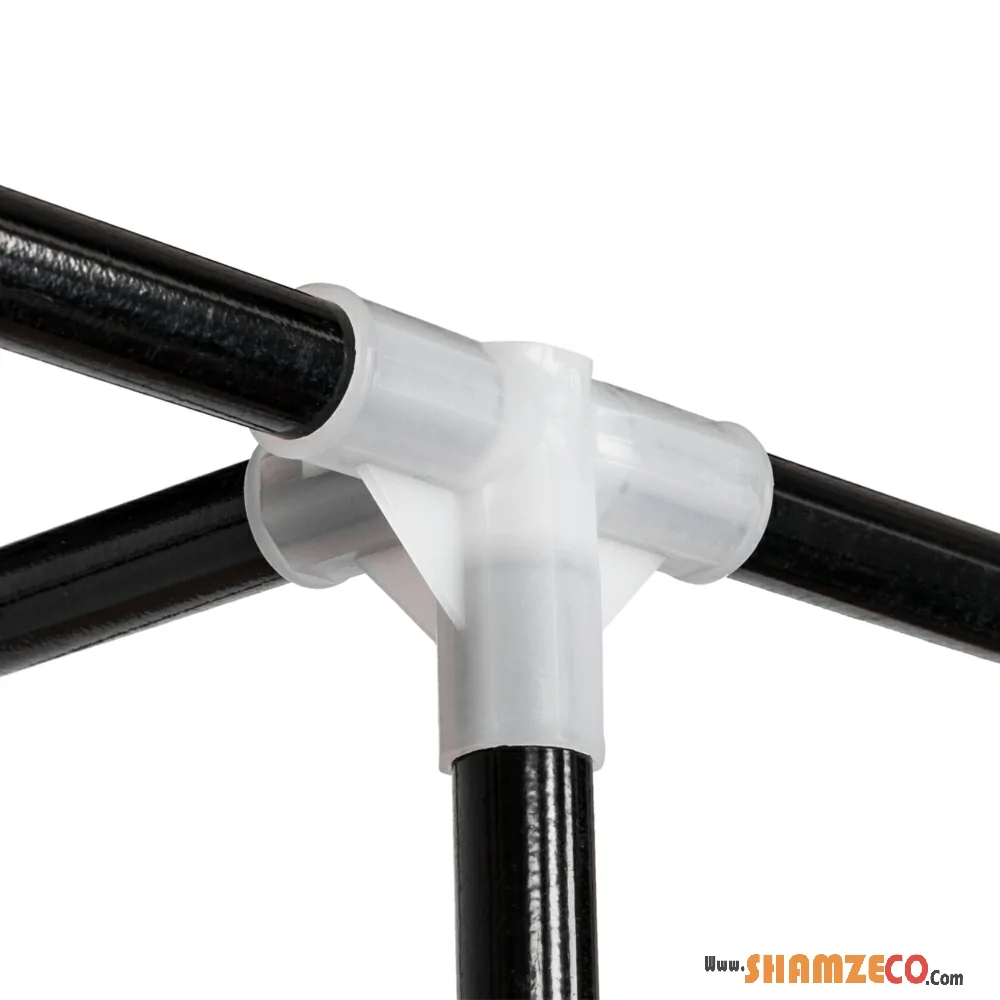 - Ensure all poles are fully inserted into the plastic connectors for stability.
