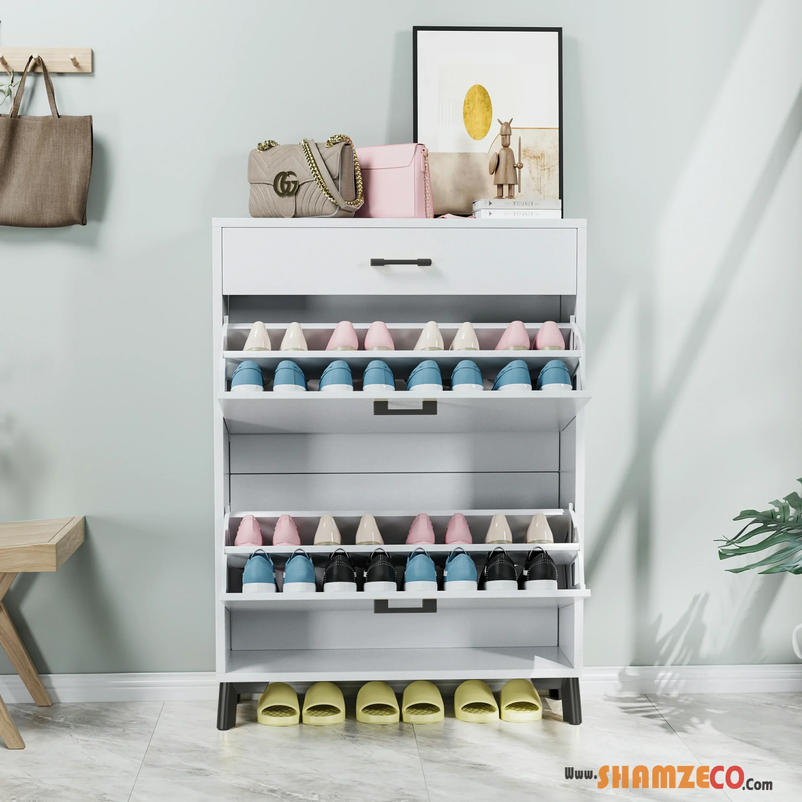 With its slim and modern design, this freestanding shoe cabinet fits effortlessly in entryways, hallways, bedrooms, or living rooms, keeping your space neat and clutter-free.