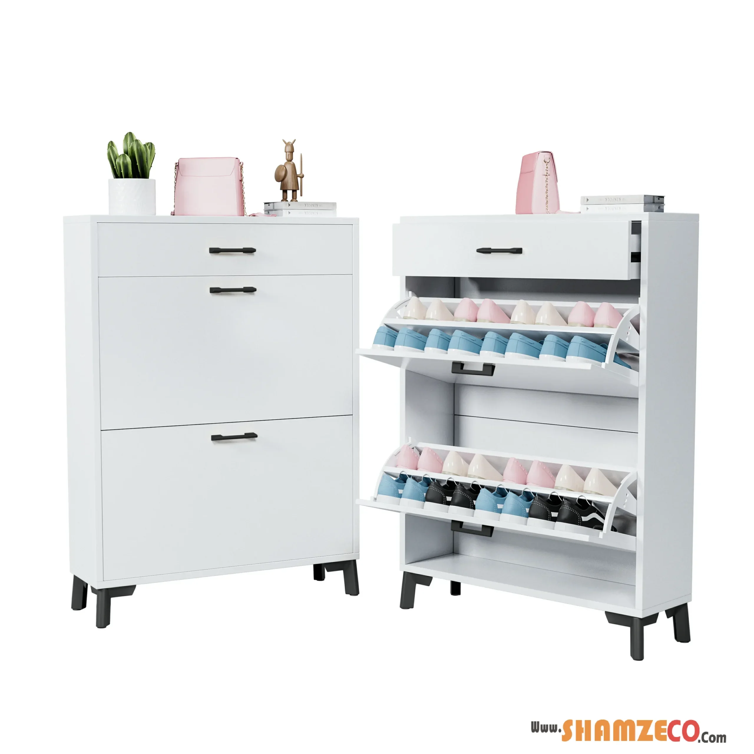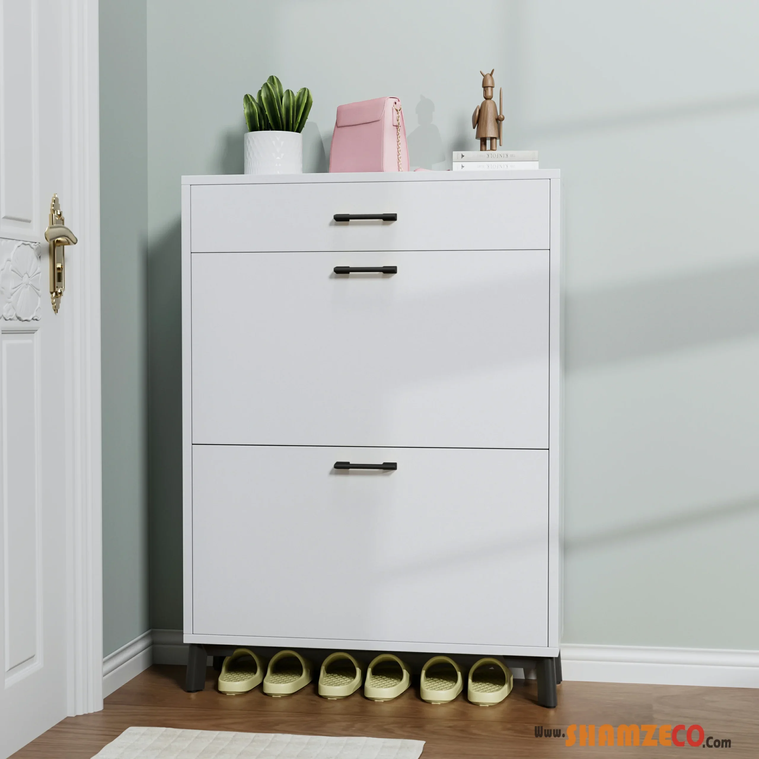 Crafted from premium MDF wood with reinforced metal legs, this shoe cabinet offers lasting durability and stability.