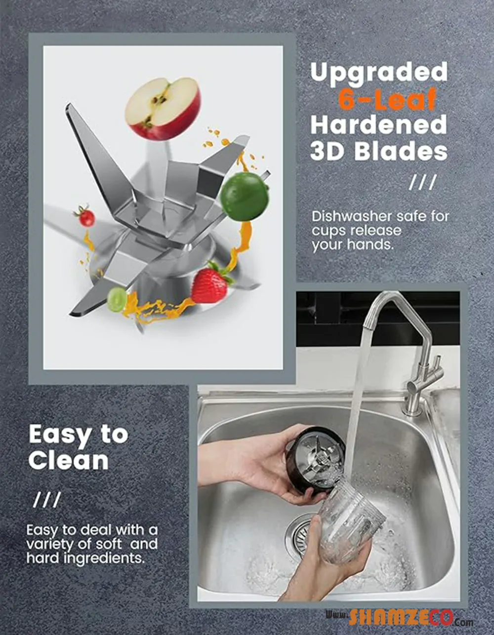 • Unlike traditional 4-leaf blenders, this 6-leaf gear blade enhances blending efficiency.
