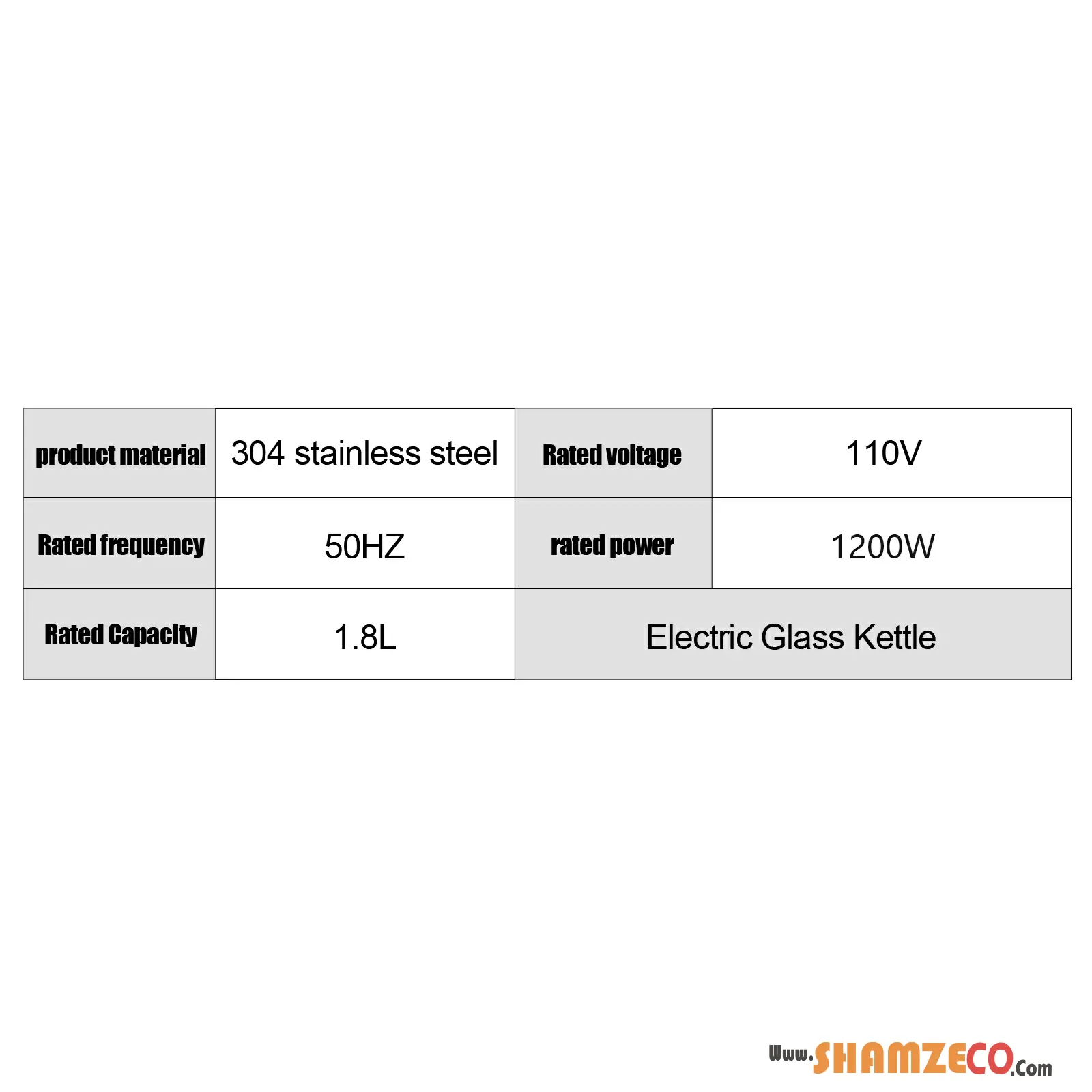 ZOKOP HD-1861-A 110V 1500W 1.8L Electric Glass Kettle US