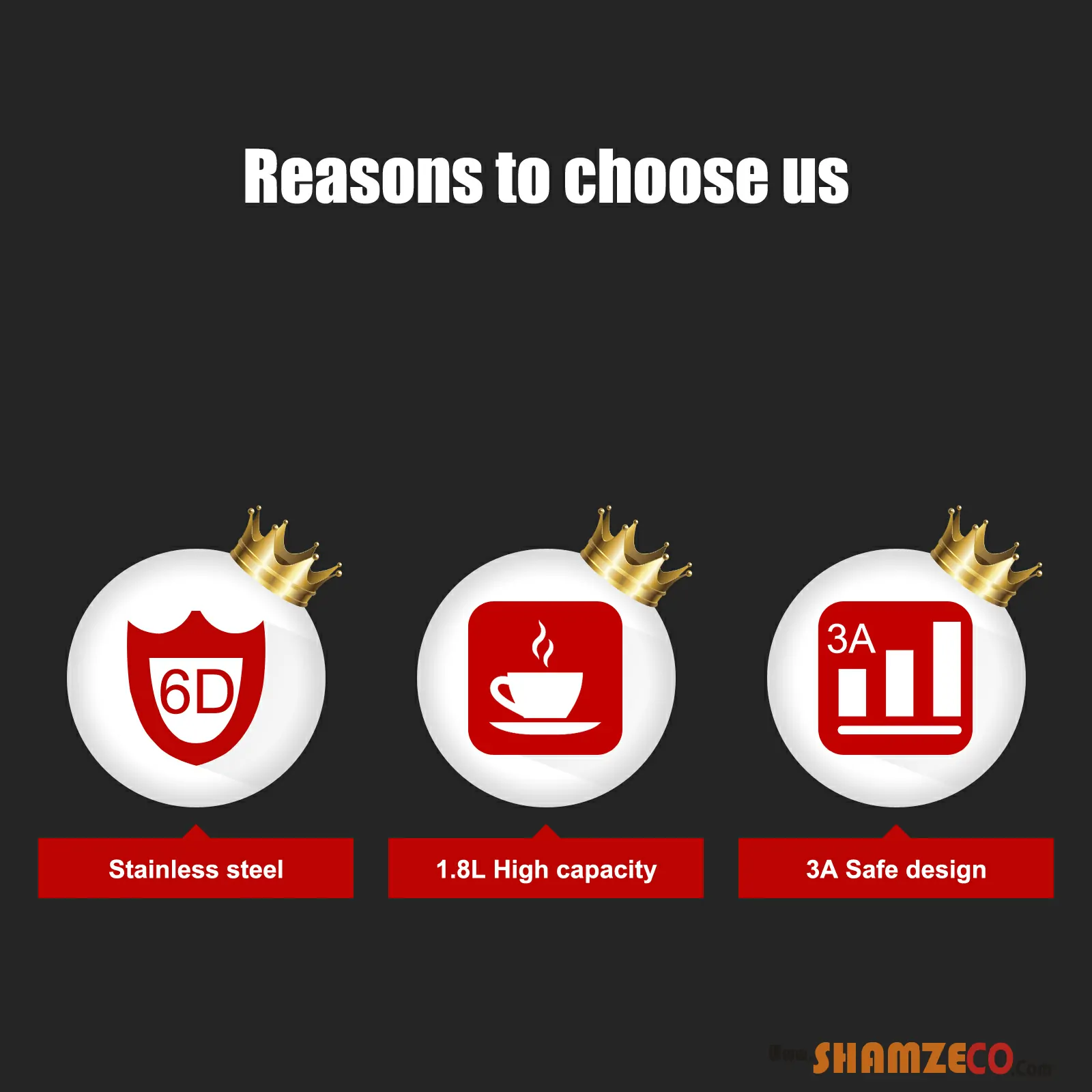 - 1.8L capacity is ideal for families, offices, and tea lovers.